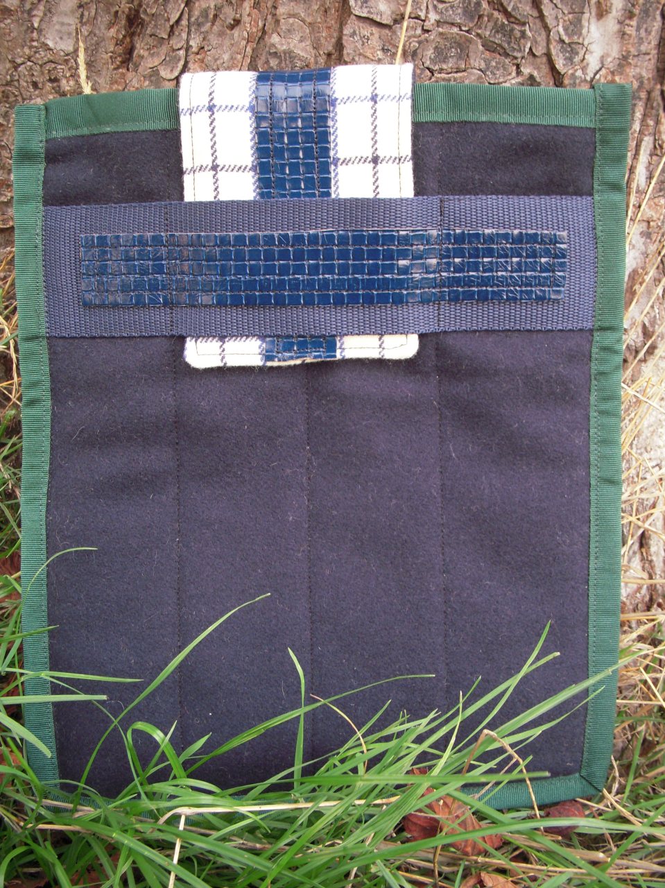 ‘DSCN6383’ Published February 11, 2016 at 2592 × 3456 in Product Page 8 – Tablet Holders Navy wool with figured leather and grosgrain trim Like Loading...